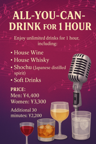 営業時間 | 月~土 20:00 - 2:00 (日・祝は予約制) ■ 定休日 不定休 時間外応相談(昼カラオケ・貸切などお問い合わせ下さい) |